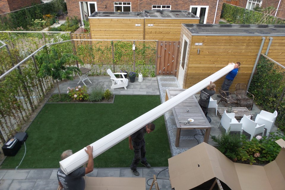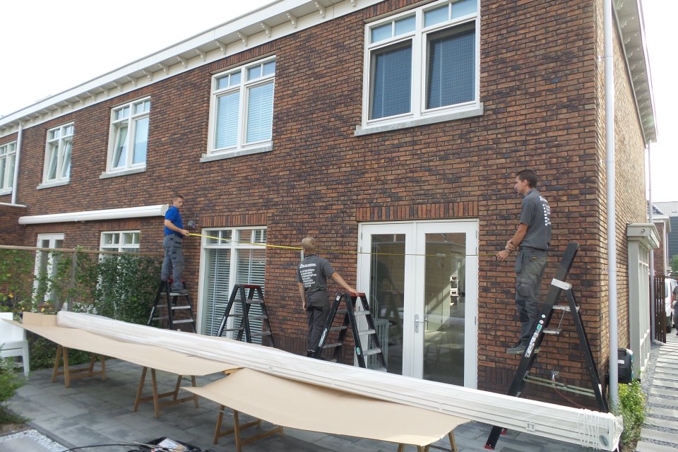 “Met maar liefst 4 man sterk kwamen ze gisteren ons zonnescherm ophangen in Benthuizen. Wat een vakwerk! Het zonnescherm hangt echt superstrak aan de gevel. Wij zijn er onwijs blij mee en ik kan iedereen Zon en Scherm van harte aanbevelen!”