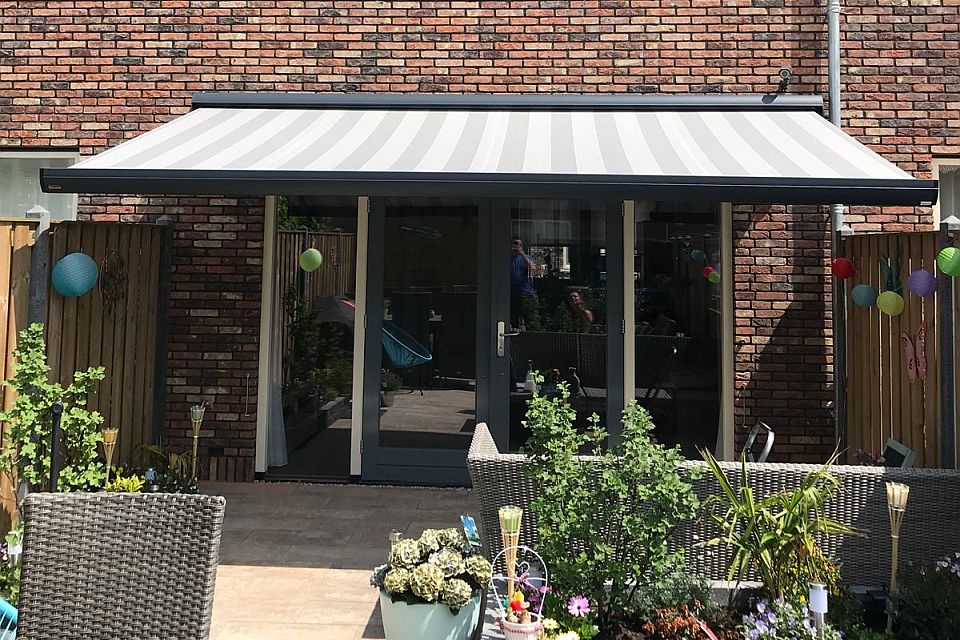 De Verano Porto is één van de beste knikarmschermen uit het Verano assortiment. Het frame wordt vervaardigd van hoogwaardig aluminium. In de standaard wordt de Verano Porto handmatig uitgevoerd middels een draaistang. Optioneel kunt u kiezen voor een Somfy-motor. De familie Hamstra koos voor de Somfy IO motor inclusief afstandsbediening. Bijkomend voordeel van deze motor is het feit dat deze communiceert met de Somfy Connexoon. Hiermee kunt u uw zonwering bedienen door middel van uw smartphone of tablet, waar ook ter wereld! Ideaal, toch?