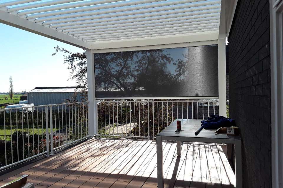 Voor een huishouden in Berkel en Rodenrijs heeft Zon en Scherm een elektrische terrasoverkapping met lamellen geplaatst, samen met een Verano Ritzscreen.