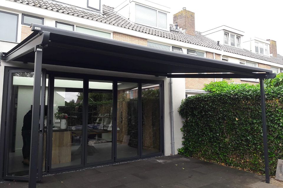 Bij de familie Heesen uit Reeuwijk heeft Zon en Scherm een P3500 Stobag pergolino gemonteerd. Met een breedte van bijna 5000mm en een uitval van 3500mm is schaduw gegarandeerd. Zodoende kan de familie in de zomer optimaal genieten van een schaduwrijk terras.