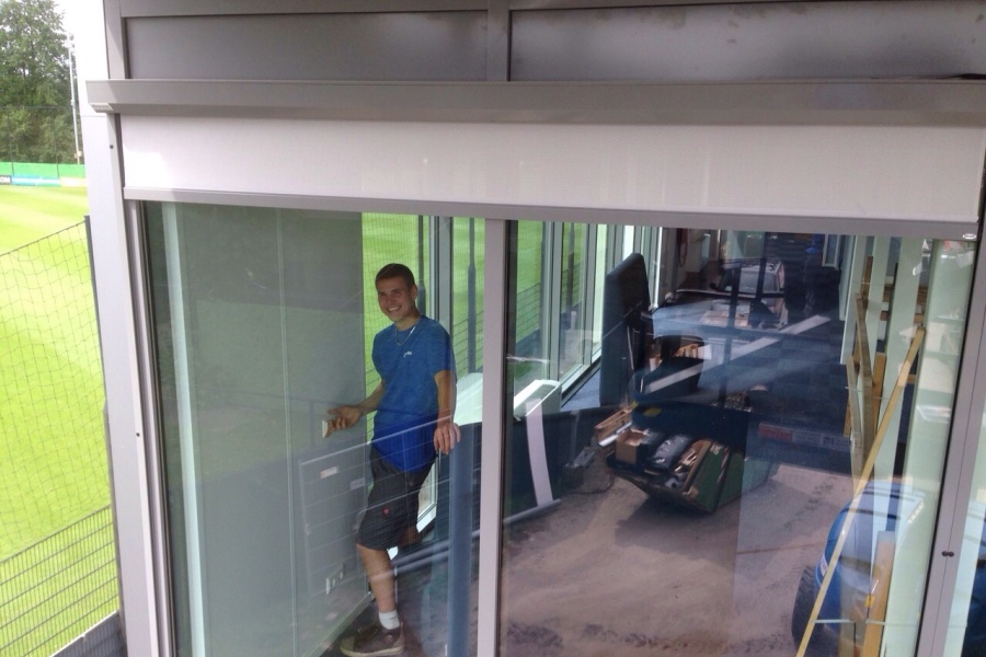 In opdracht van Jan Snel heeft Zon en Scherm bv bij Sportpark “De Toekomst” van AFC AJAX AMSTERDAM onlangs 38 Verano Sunscreens gemonteerd. De medewerkers van AJAX kunnen hierdoor prettig werken in de schaduw. De Verano Screens 85 zijn per gevel geschakeld door middel van centrale schakelaars.
