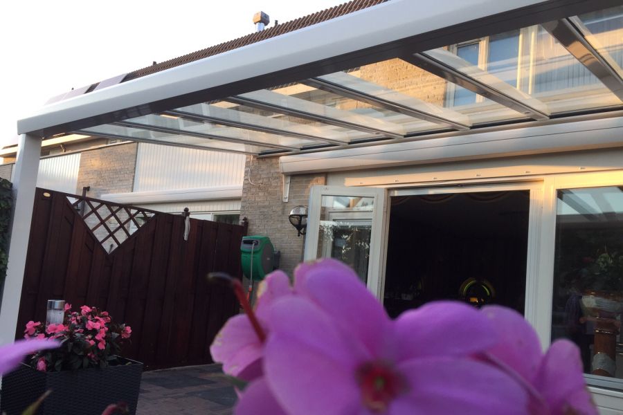 Zon en Scherm heeft een Verano Riva glazen terrasoverkapping geplaatst bij de familie Groeneveld uit Zoetermeer.
