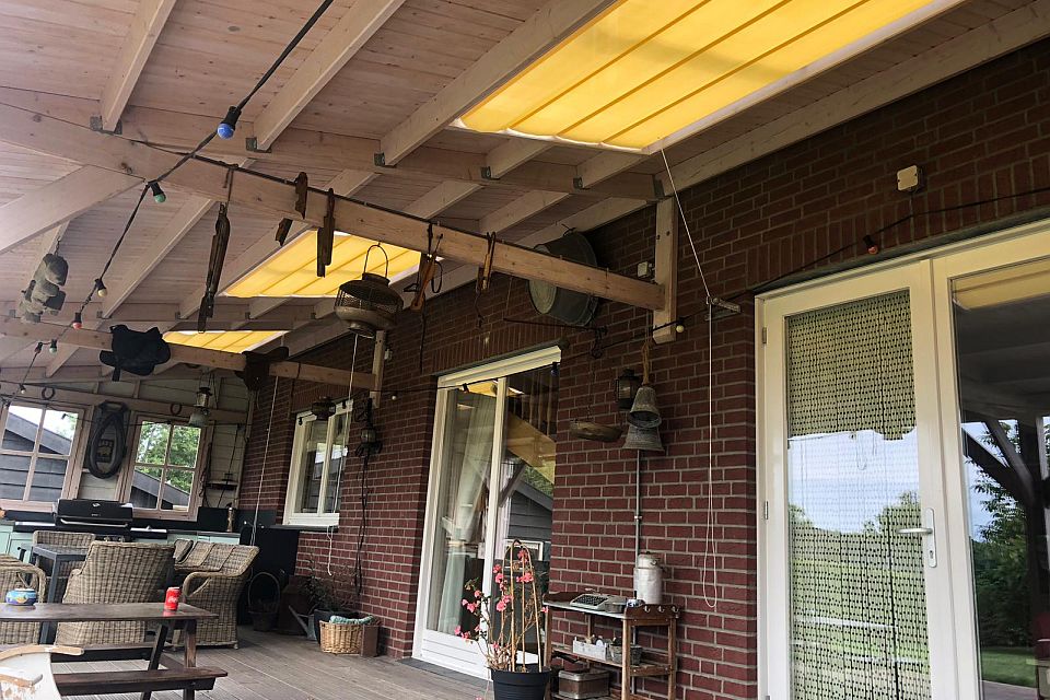 De baleinzonweringen zijn onder een bestaande overkapping gemonteerd en zorgen voor een sfeervolle uitstraling. De koorden zorgen ervoor dat de Verano Tallinn V650 verandazonweringen eenvoudig te bedienen zijn. Via een trekkoord kan het doek helemaal dicht, open of op een tussenstand worden geschoven.